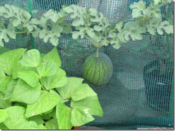 Chỉ trong vòng nửa tháng, cây dưa hấu đã đậu trái và phát triển. Vì trái rất nặng nên khi trái đạt đường kính khoảng 10cm, bạn nên làm giá đỡ để tránh gãy cành.