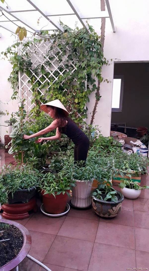 Nhiều năm qua, hàng ngày, mẹ Hồ Ngọc Hà vẫn dành thời gian để trồng rau, chăm cây trong vườn nhà.